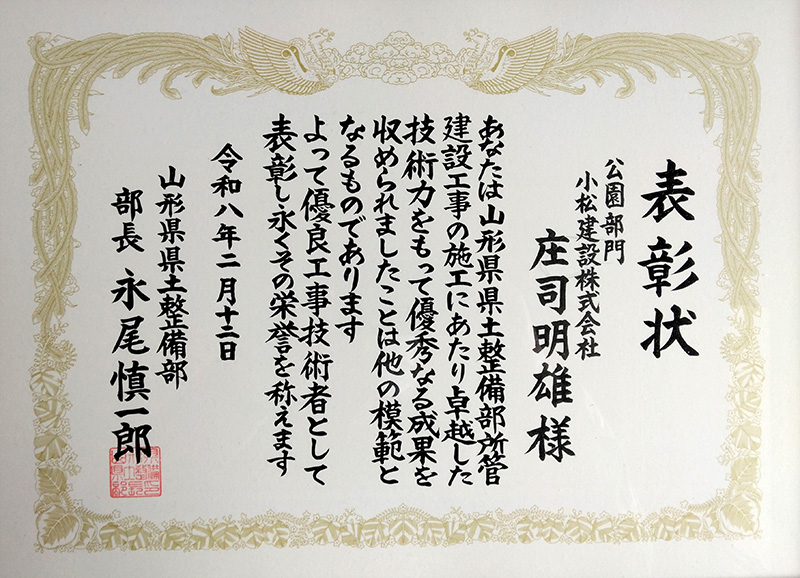 山形県より表彰されました。